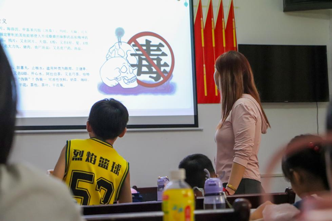“這是鴉片、這個是大麻……”在黃岡市羅田縣禁毒中心,學(xué)院聽濤社會實踐團(tuán)成員結(jié)合陳列的傳統(tǒng)與新型毒品標(biāo)本,為孩子們開展直觀生動的禁毒教育。為增強(qiáng)宣講效果,團(tuán)隊成員借助孩子們喜聞樂見的視頻動畫形象,演示吸食毒品的生理危害,讓禁毒知識深植于心。