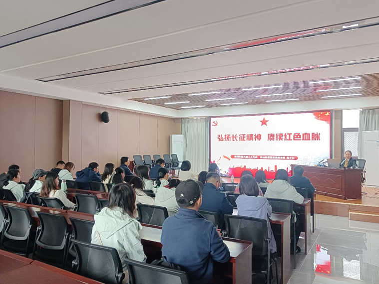 弘揚(yáng)長征精神,延續(xù)紅色血脈。在園區(qū)三樓會議室,黃岡市第六屆人大代表、英山縣委黨校高級講師陳小紅為學(xué)院教師黨員講授一堂微黨課,通過介紹長征的基本情況、解析長征精神的內(nèi)涵,生動詮釋了“堅(jiān)定信念、不怕犧牲、獨(dú)立自主、顧全大局、依靠人民”的長征精神,并強(qiáng)調(diào)鐵的紀(jì)律是長征偉大勝利的重要保障。