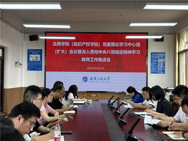 (通訊員 賀陽)6月12日上午,法商學(xué)院(知識產(chǎn)權(quán)學(xué)院)于學(xué)院311會議室召開黨委理論學(xué)習(xí)中心組(擴大)會議暨深入貫徹中央八項規(guī)定精神學(xué)習(xí)教育工作推進會,會議由學(xué)院黨委書記陳朝娟主持,學(xué)院黨委委員、各黨支部書記參加會議。