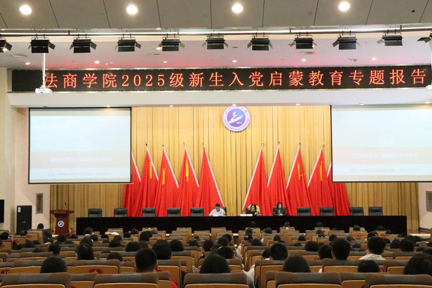 (通訊員 賀陽 陳奕含)為進一步增強2025級本科生和研究生對黨的認識,堅定入黨信念,引領新生扣好入黨“第一??圩印?。10月23日,法商學院(知識產權學院)在四教多功能報告廳組織開展入黨啟蒙教育活動,特邀華中科技大學馬克思主義學院文紅玉教授進行專題報告,學院黨委書記陳朝娟、黨委副書記孫勇、黨務干事賀陽以及全體2025級本科生和研究生參加活動?;顒佑蓪O勇主持。