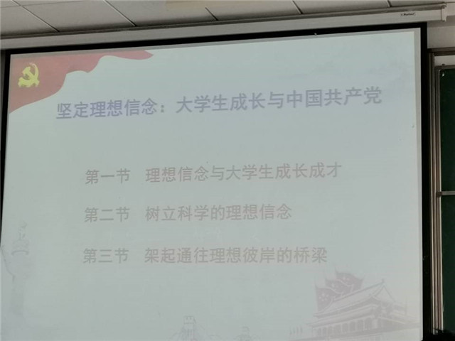 楊克平老師的主題黨課內(nèi)容分為“理想信念與大學(xué)生成長成才”“樹立科學(xué)的理想信念”“架起通往理想彼岸的橋梁”三個部分,重點講解了堅定理想信念的重要性,堅定馬克思主義、共產(chǎn)主義信仰,樹立中國特色社會主義共同理想與當代大學(xué)生成長成才的重要聯(lián)系,以及大學(xué)生應(yīng)該如何在堅定理想信念中成長成才。